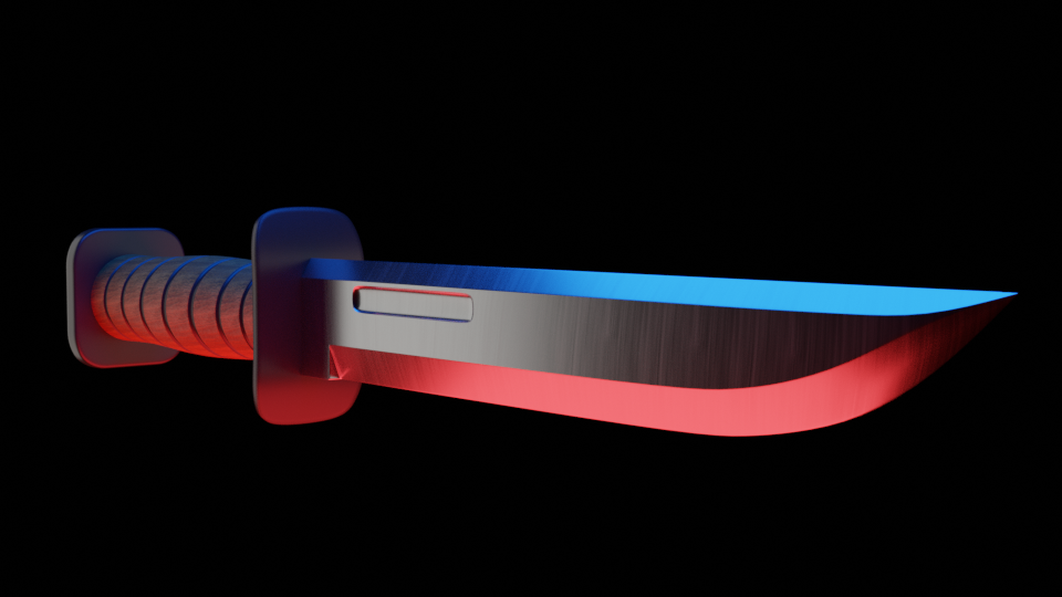 I'm back. These weapons are going to be interesting. They are way more fun to light, but way the crud harder to model. I'll probably need to now teach myself better sculpting to get acceptable results. This one was good training for my quad modeling and UV-unwrapping. Though, this one needs a few days of iteration to make look good. Don't look to close but you can see some unwrapping errors already.