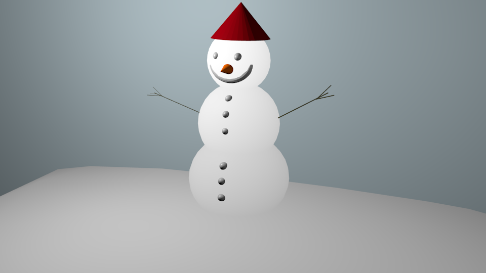 Snow mannet, person and camera. I've did them just using primitives, but I didn't even used edit mode, modifiers, or n