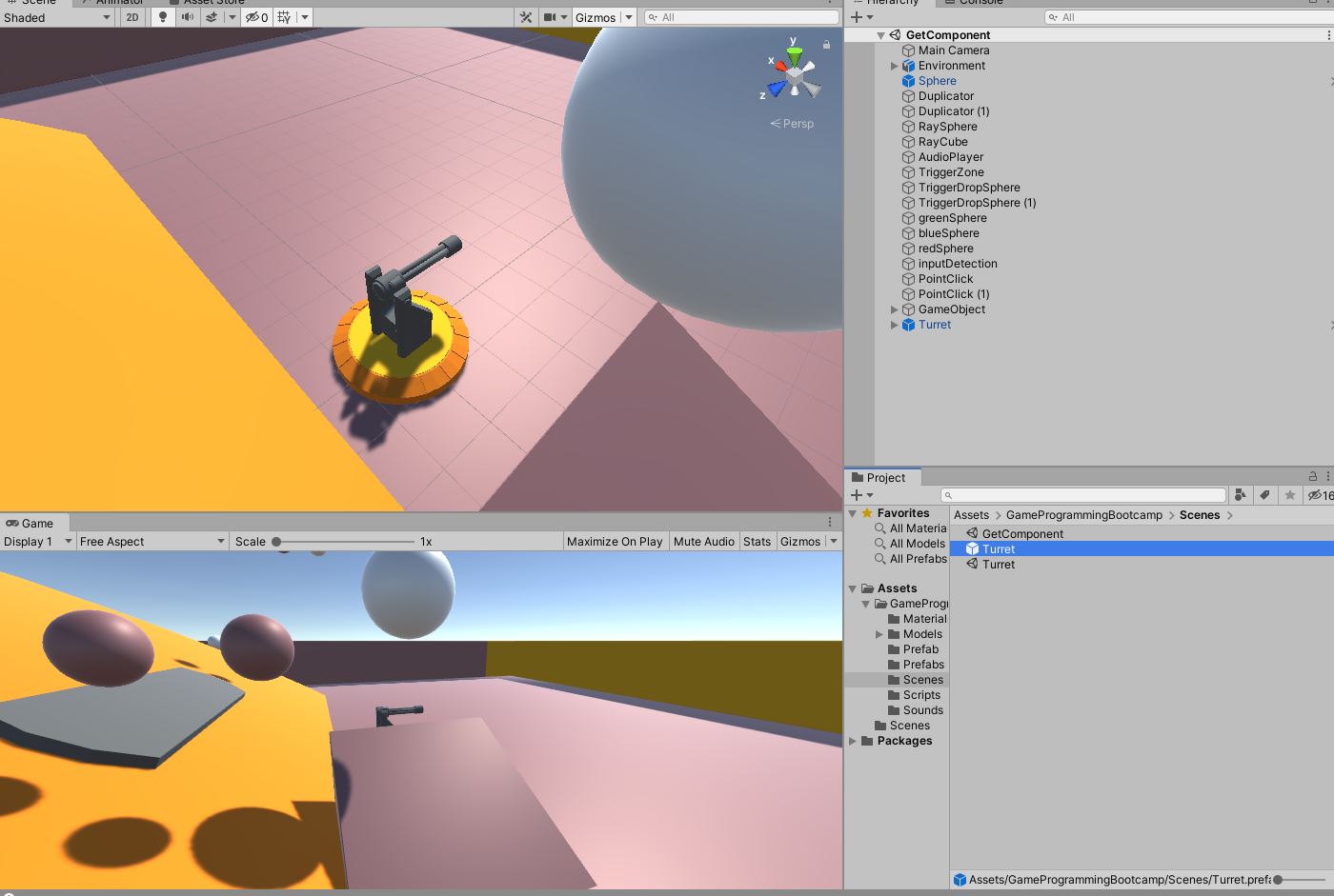 The best solution is not to import the unity package model itself but to open the turret scene provided and move the Turret to the Project area and then import it to your other scene by clicking and dragging it to the Hierarchy.