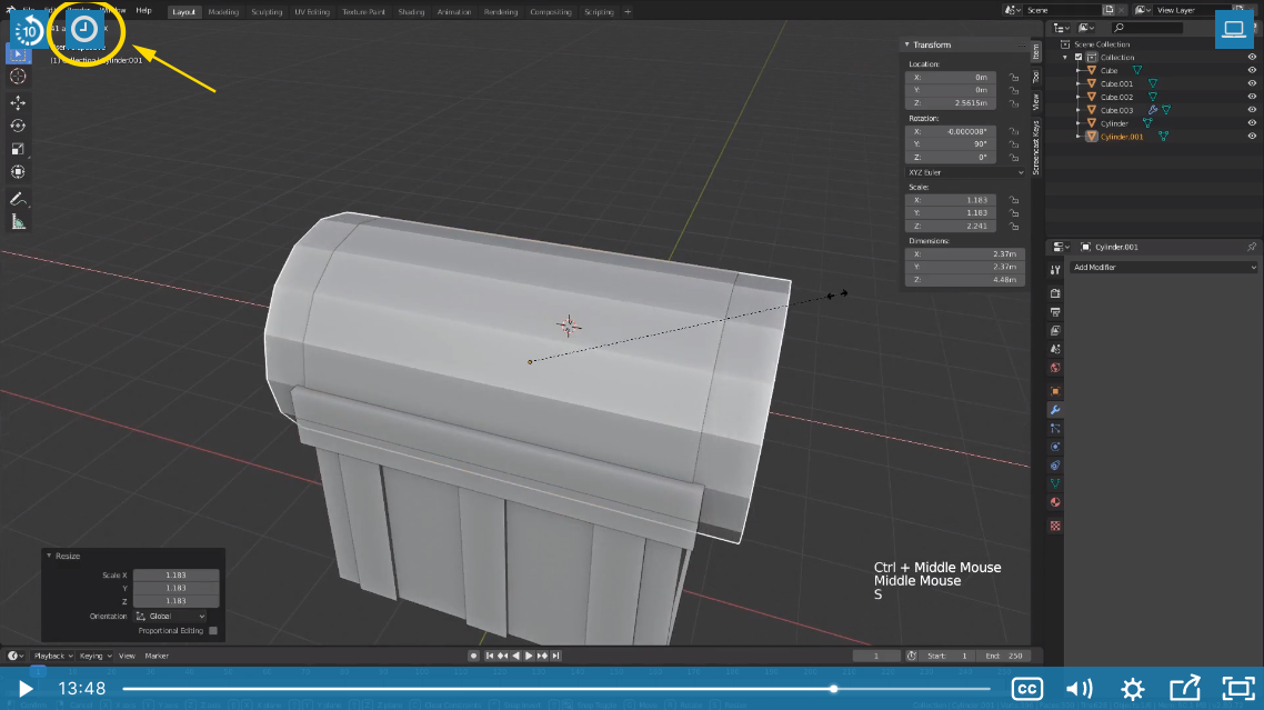 Actually I think it was immediately before you did the x-axis scale in that screenshot. The cylinder had to be scaled up so that the edges were aligned close to the outside of the planks rather than the inside of the planks. Without that I had to increase the band thickness too much. The bands would have poked through the inside of the lid. Hope that makes sense.