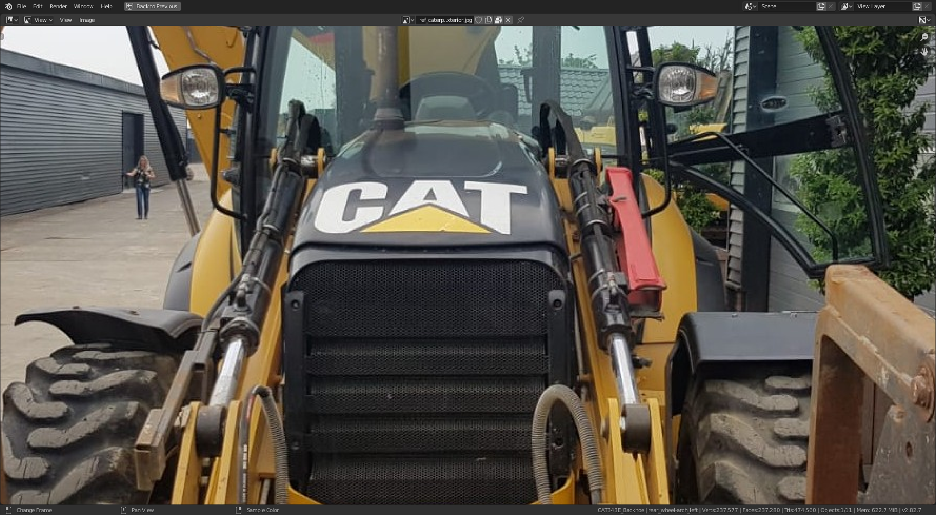 The fender on the right, as we look at this angle, looks like it maybe new, fitted for this photo op. The left looks older and probably the original for this model of 434E. So I will stick with what I see as the original. The new is flat but has the edge detail all round, including across the top. The original has the curvaceous look, but not the detail across the top.