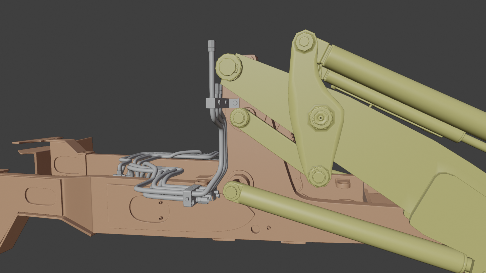 jakeblended I've finished placing the 8 hydraulic lines from the swing frame to the digging arm. I can throw the file your way whenever you need it. It will probably be best to cut the lines off cleanly with fittings where my lines are come out on one side and yours come out the other (clean separation of work). Just lemme know!