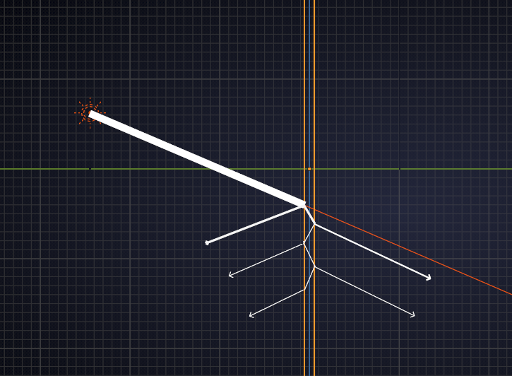 But things are more complex, because part of the light gets reflected from the surface and the rest of the light gets bend and then at the other end of the glass the same thing happens: part of the light gets reflected and the rest gets bend (in the opposite direction this time), something like this:
