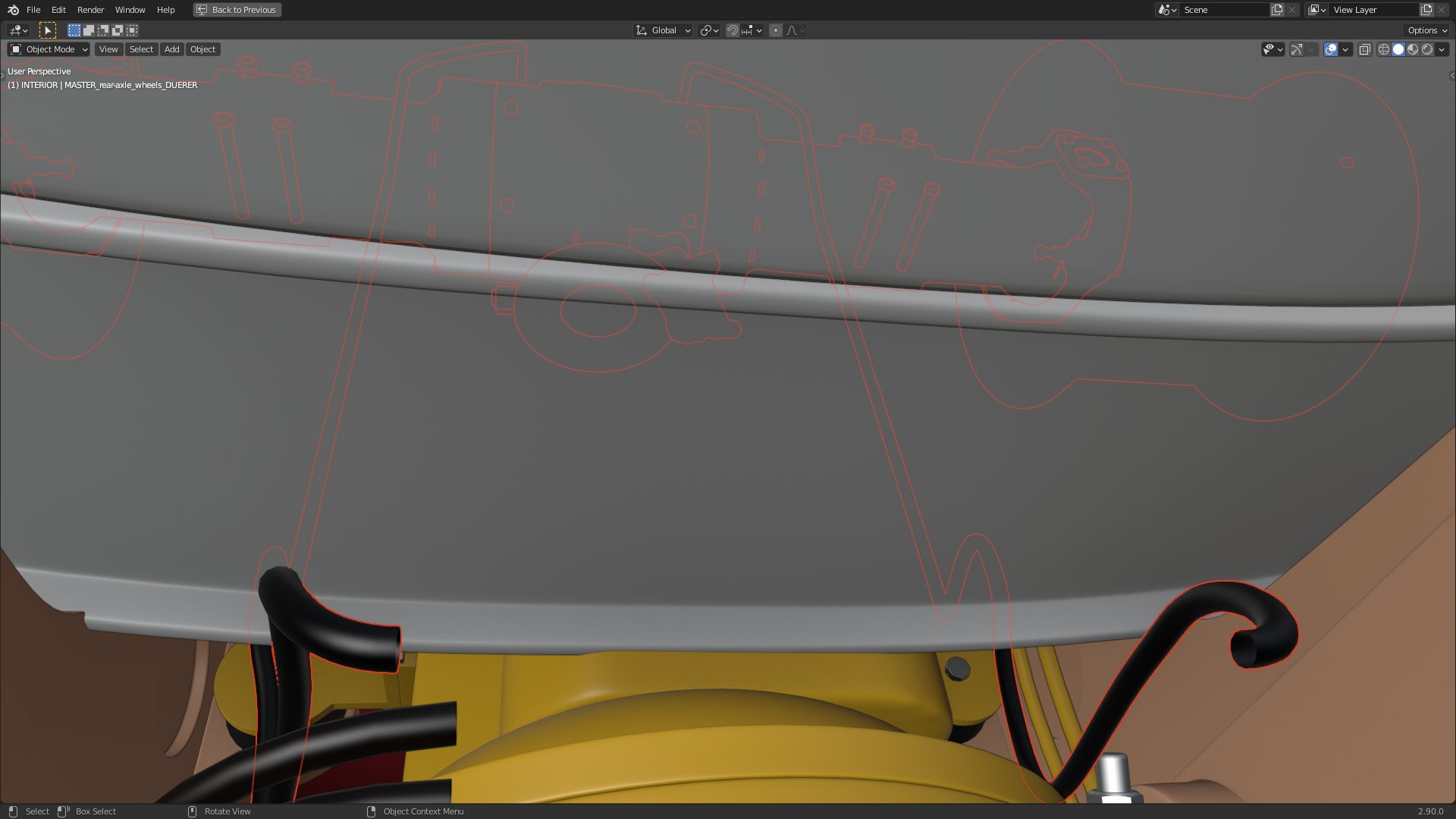 I've dowloaded today the current "Master Assembly" and "Parts" files for our "Dog" backhoe. The axle rims and hubs which are duplicates of the corresponding front axle parts need to be hidden so that my rear axle rims and hubs are fully visible: