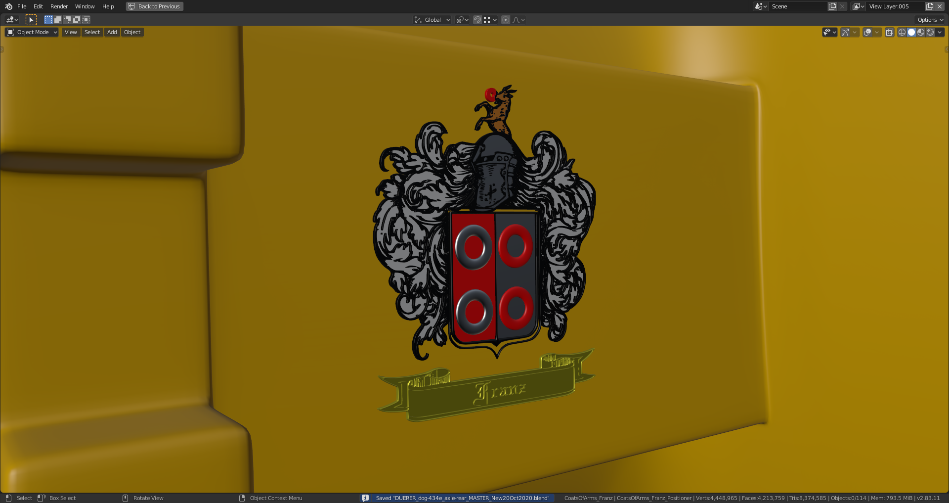 I have a second version of the coat of arms, but it needs to float slightly above the surface in order to avoid z-fighting: