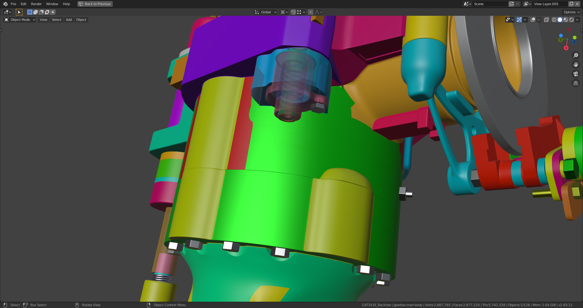 The hub and the first attachment ring are now one continuous part as on the real backhoe: