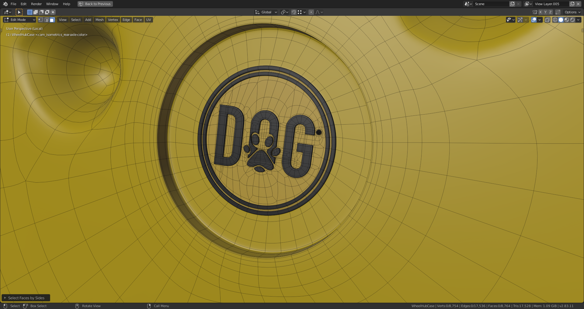 The "Dog" logo is also now connected with the hub in a retopologized version: