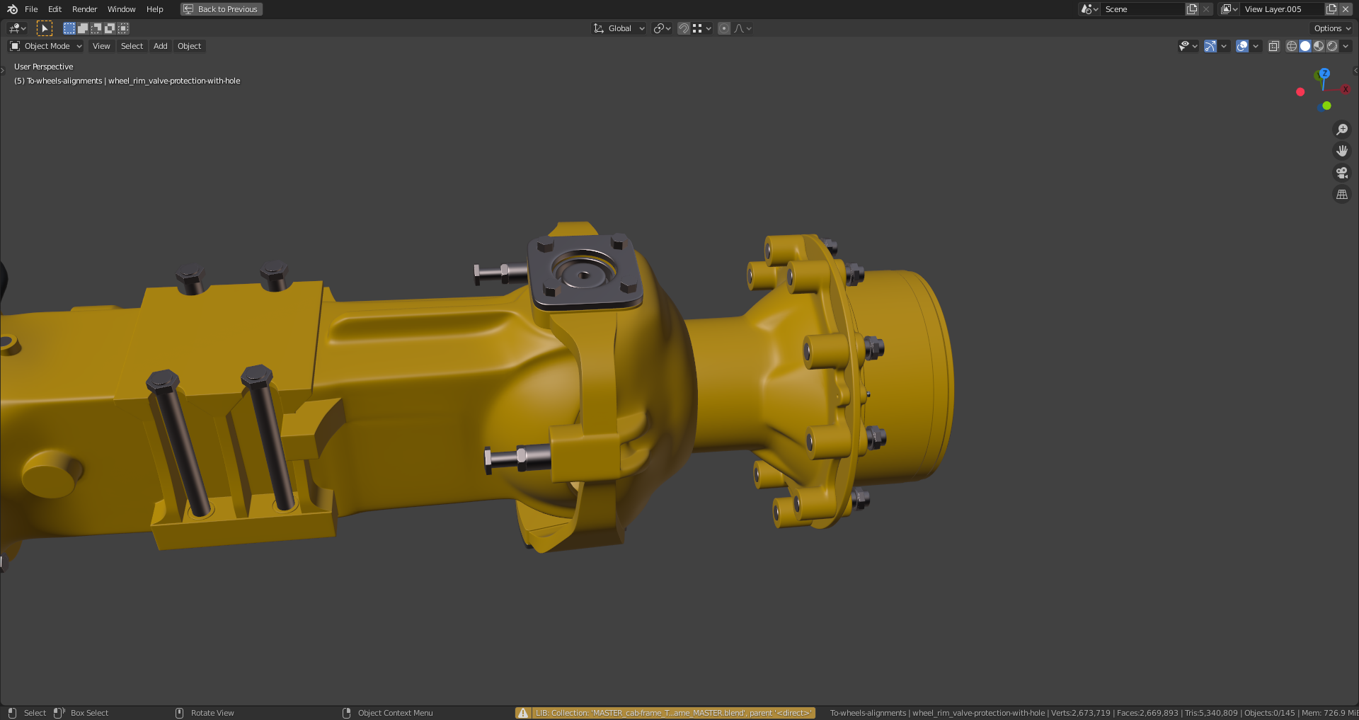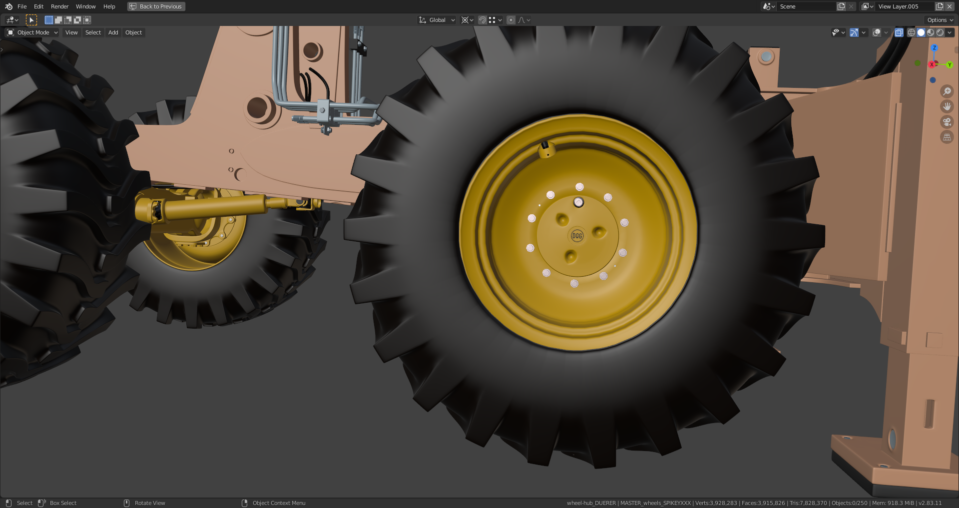 These front axle parts (including the valves and the "Dog" logos) need to be hidden on my rear axle so that you get this view: