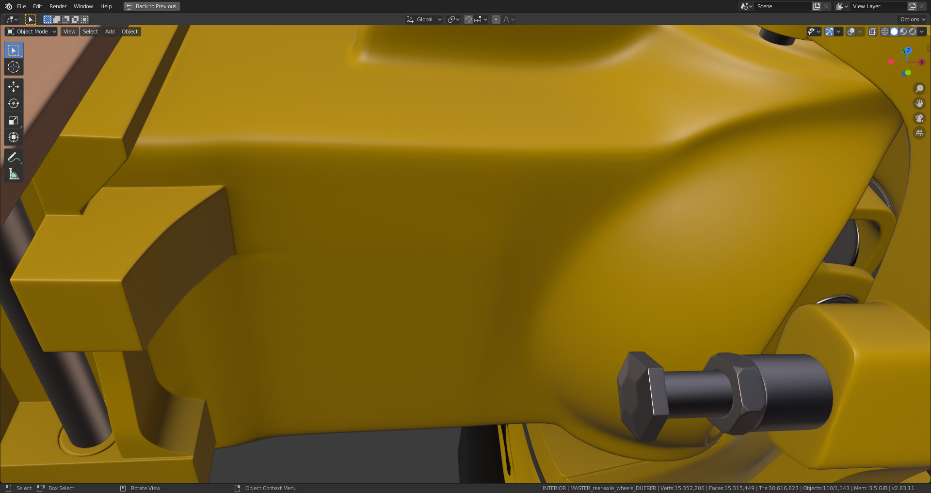 I've just seen Omar's proposal for an eighth livestream with the complete UV-unwrapping of every part model as assignment. This probably requires some further mesh cleanup and simplification of my rear axle. And the right setting of the seems in such a complex model as well as an effective packing of the unwrapped parts will also be a challenge. I remember Kent having demonstrated an effective packing in a single UV-map in his "Treasure Chest" course.