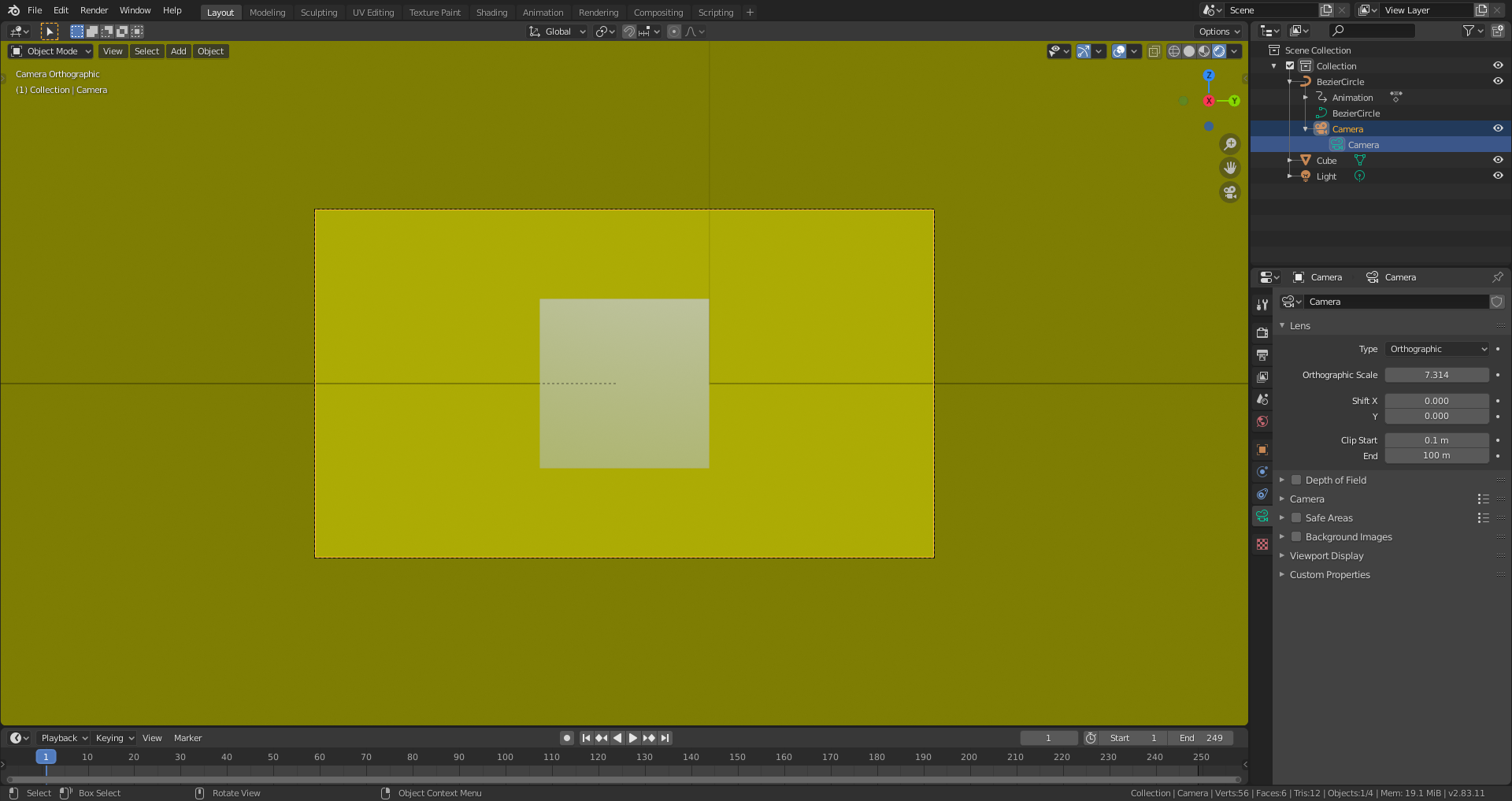 When I now switch - while in camera view and render preview mode - from perspective view to orthographic view, the green-red pattern is replaced by a uniforemely yellow background which is a mixture of green and red: