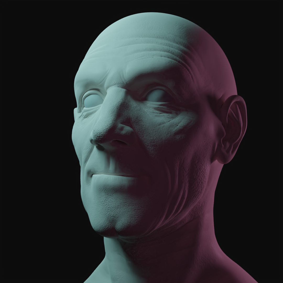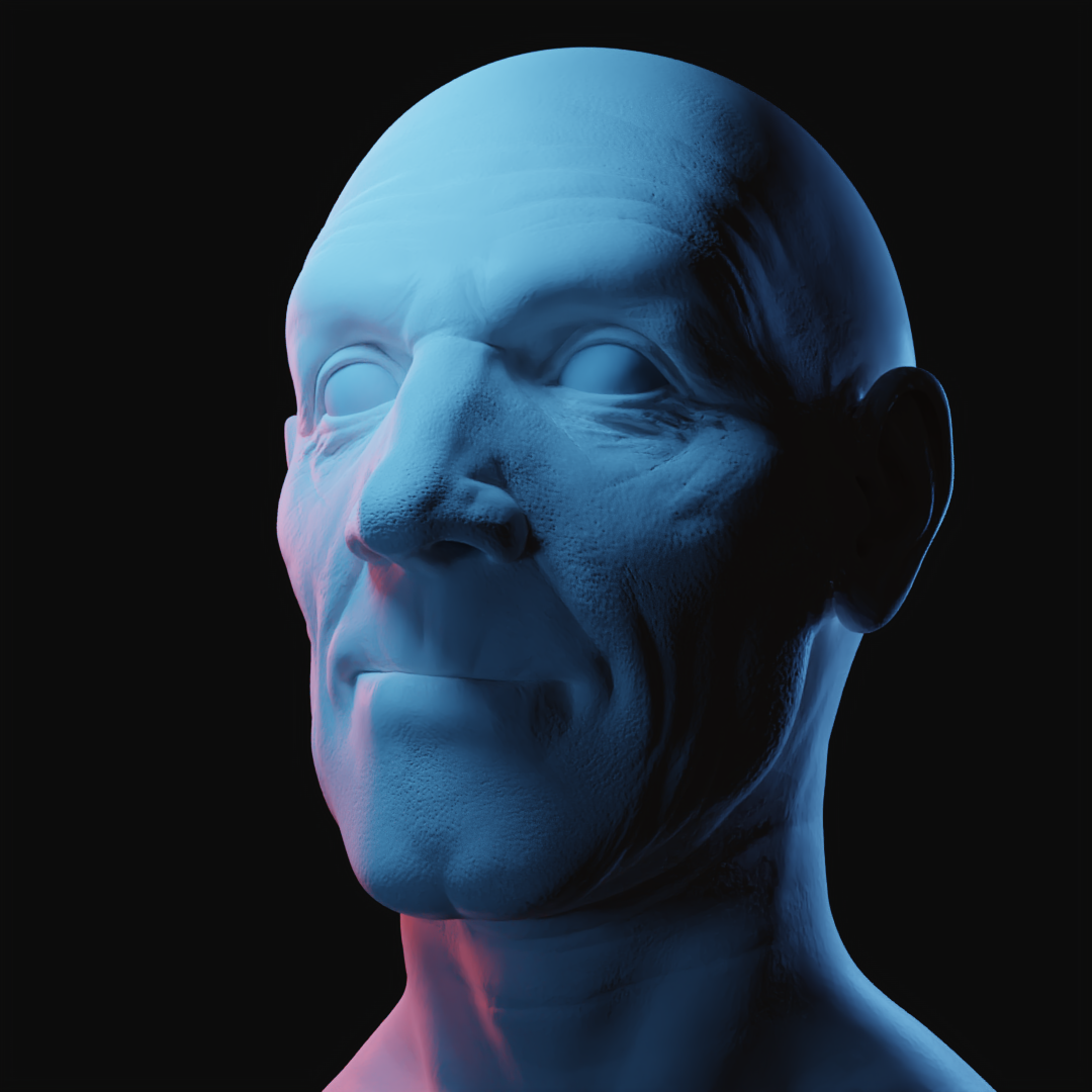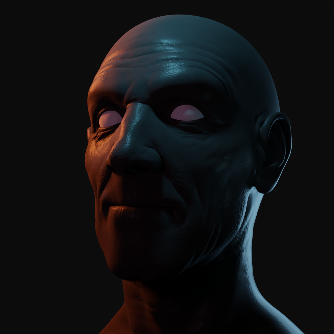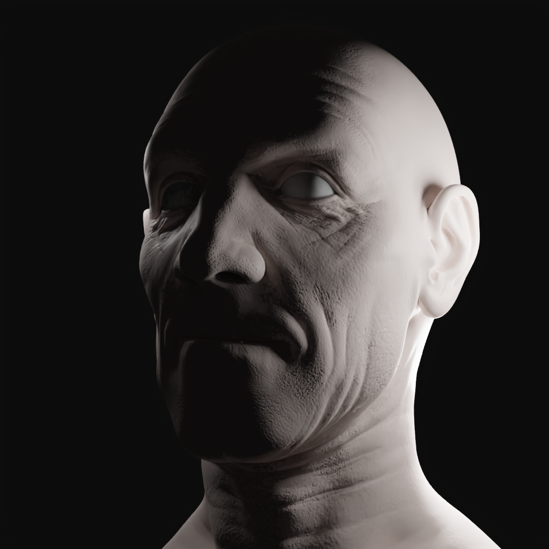 For five, the camera angle plays a big role, but also the fact that the light is hitting his forehead rather than the side of his head makes a really big difference. The photo seems to be conveying a sort of wounded anger, while the render looks like a stern and powerful figure - almost the opposite.