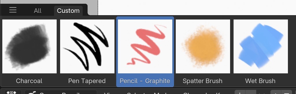 A sample of Grease Pencil Brush Assets created by our very own instructor,