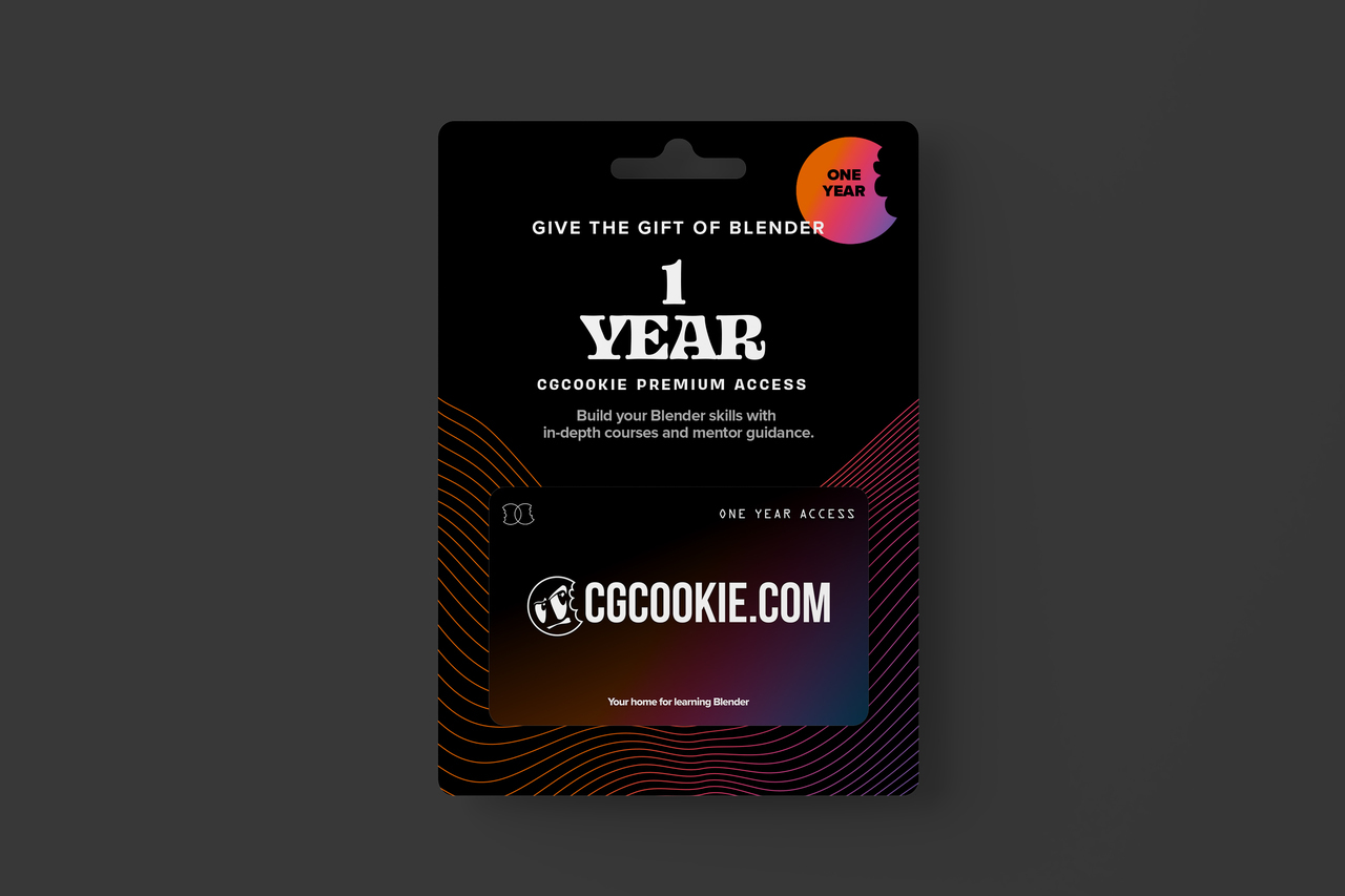 A CG Cookie gift card unlocks one year of Blender training, community, and inspiration. Perfect for artists who want to level up their skills, explore new techniques, or finally dive into 3D.