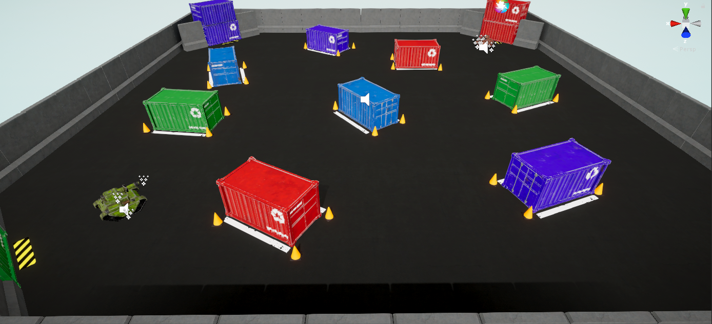 It was simple, just some shipping containers that can be used to hide behind or shoot projectiles at with concrete barriers around the edges of the map to keep everything contained. Each corner could contain a unique tank player.
