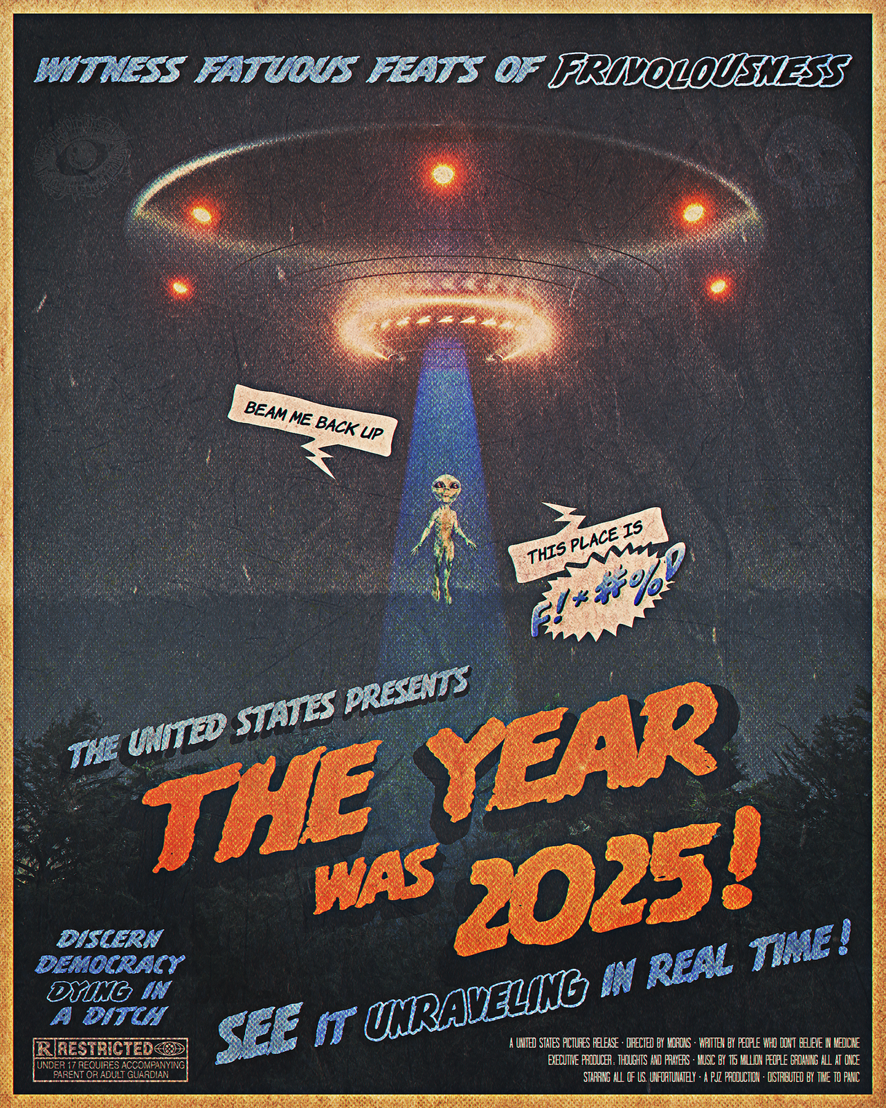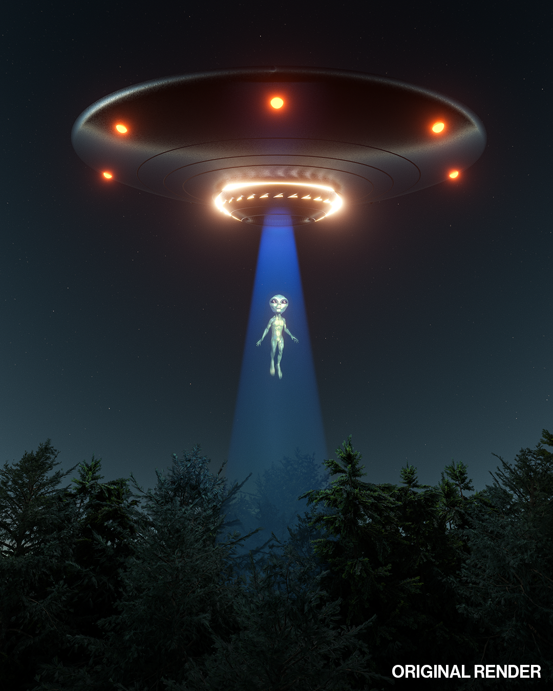 Was officially midway through Blender Basics here and was itching to create something. Inspired by those old 50s disaster movie posters...figured I could start in Blender and finish in Photoshop for that stylized look. The original alien model was a character model from DAZ3D. Couldn't quite figure out Diffeomorphic (getting the DAZ model into Blender cleanly) so my workaround was exporting him as a transparent PNG. Got an asset pack of flying saucers on ArtStation for $2, the night sky was from Physical Starlight and Atmosphere and the forest were random trees from Botaniq.