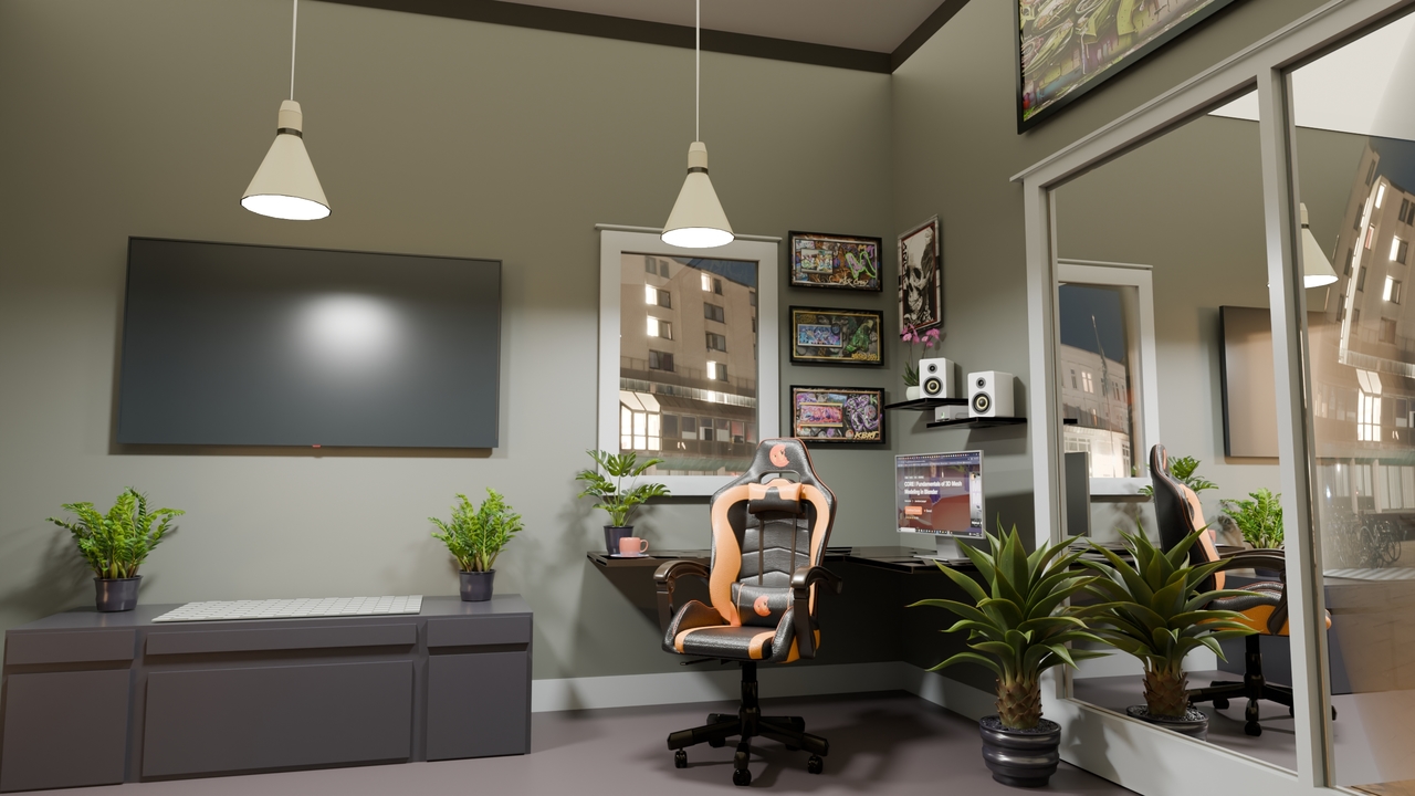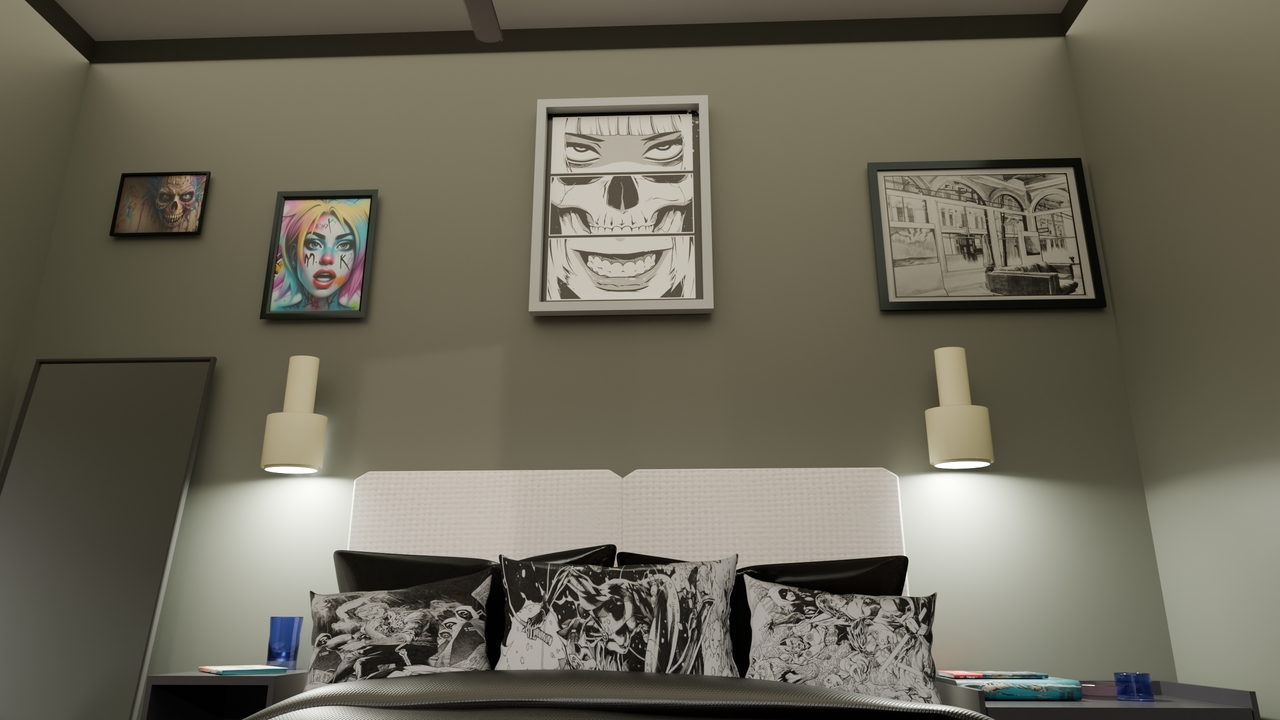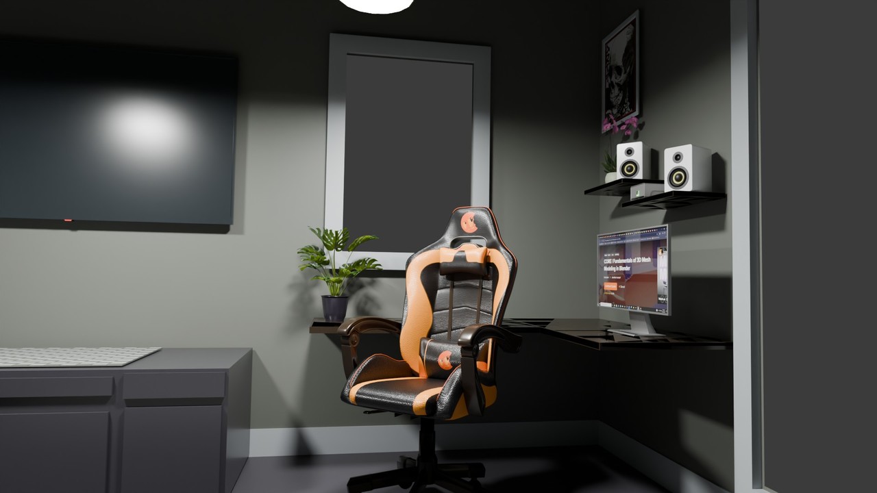Here are some renders and screenshots of the studio-style bedroom I modeled for my Fundamentals of Modeling final project! I'm having an amazing time putting my newly learned hard surface modeling skills to the test đ. This is my first time successfully modeling an entire scene from scratch without following tutorials step by step! Most of the furnishings were created using only reference images, while the gaming chair was a mix of tutorial guidance and independent work. The plants were imported from Poliigon, but I made some tweaks to the vasesâ and plantsâ meshes to make them my own. Since I havenât completed the CORE courses for lighting and materials yet, I believe those aspects will improve as I continue learning and refining this project. Big thanks to CG Cookie for the guidance and opportunityâmy Blender future looks brighter than ever! đÂ