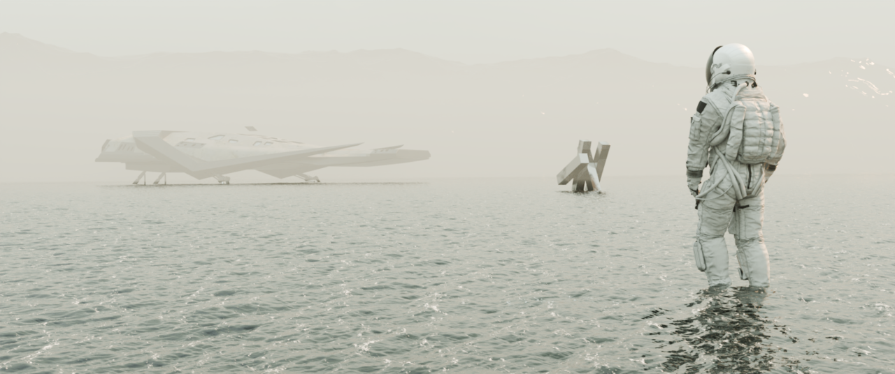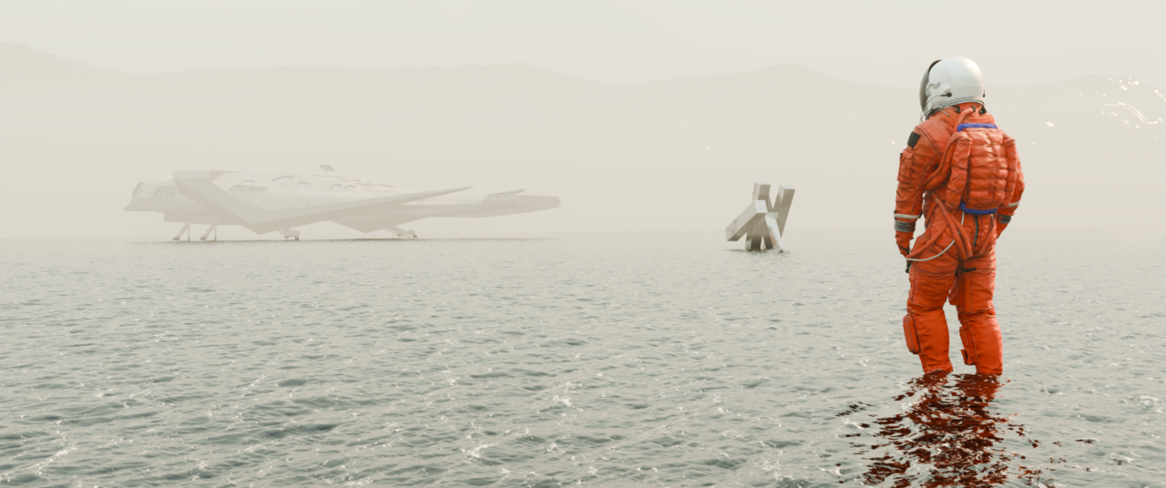 I like the top one the best because of the contrast and because the shot is nicely balanced between the shuttle, TARS and astronaut. The middle one makes the astronaut stand out best because of the color the suit brings into the scene. All three are very pleasing to look at and I like the astronauts detail.