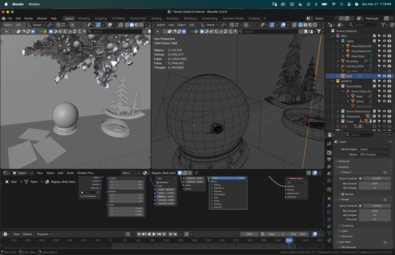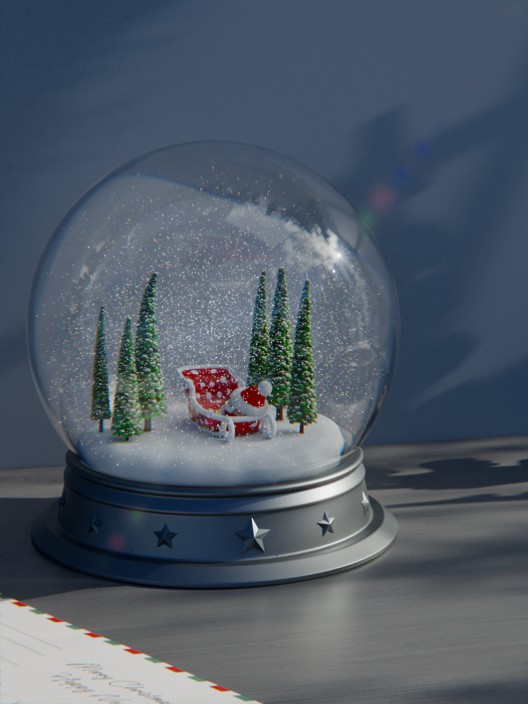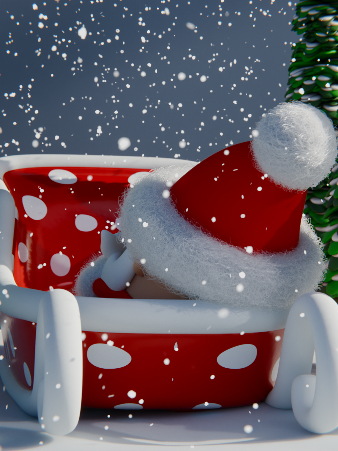 Originally, the whole first bit would be solely a good snore session and I planned to post the full cinematic zoom-out, but after doing the math on 20,000 snow particles, glass, and fuzzy hair particles on Santa’s hat... my GPU asked for its own siesta. 💻😴