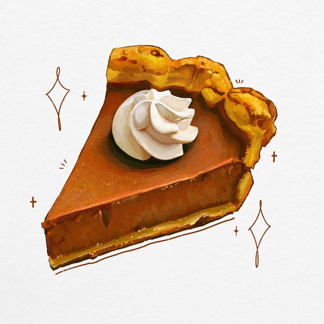 Hand painted Pumpkin pie 🥧 made in blender 3D.The 2d art I used as reference is by "moonochromatiic" on insta ❤️