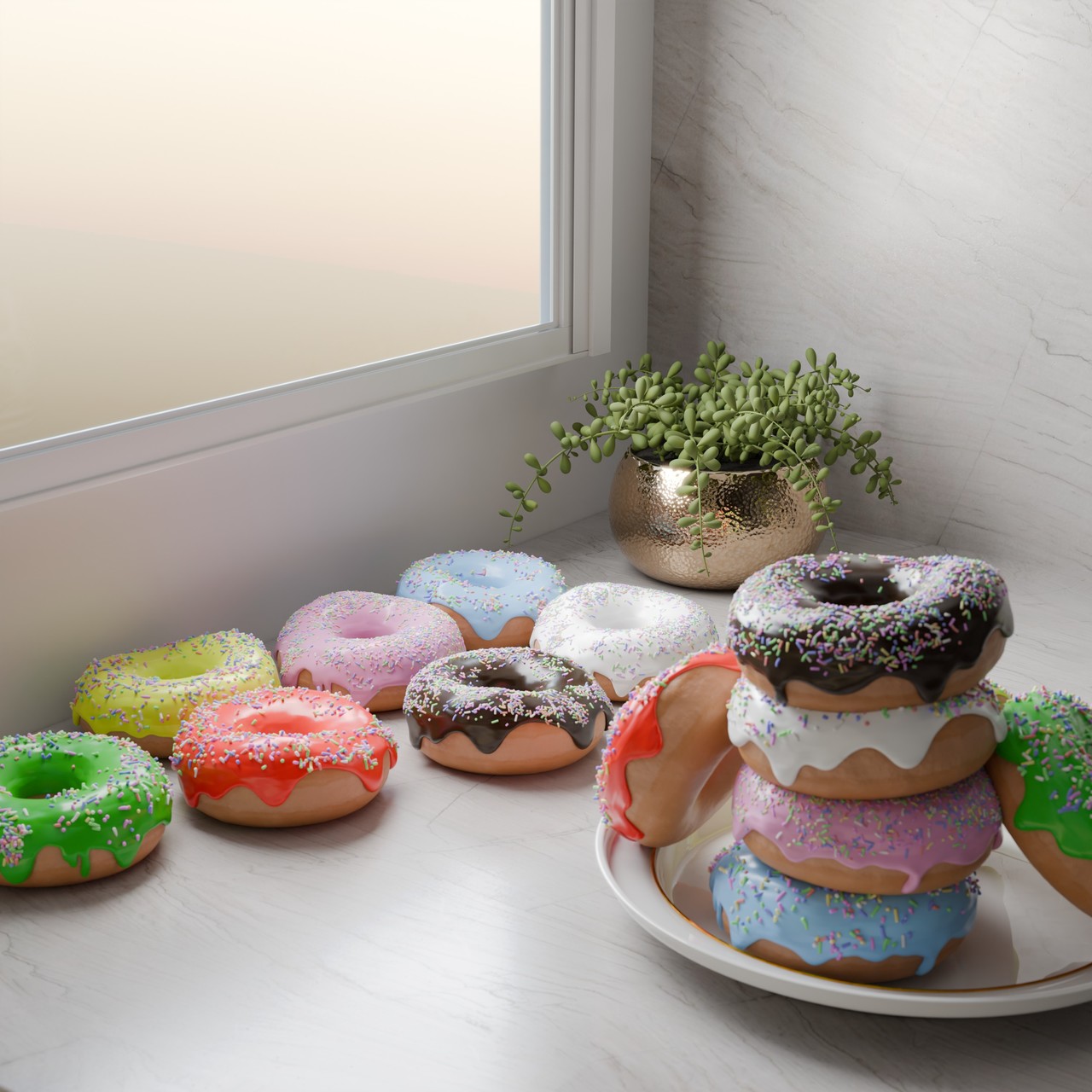 Making the donut was so much fun. The most top are my finals/recent renders. The renders descending are my very first renders. Old renders!