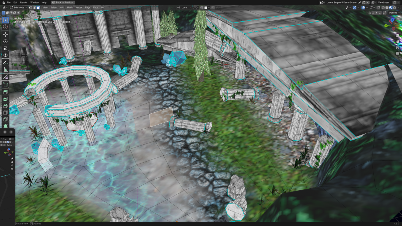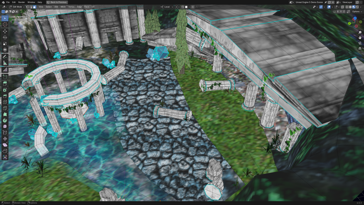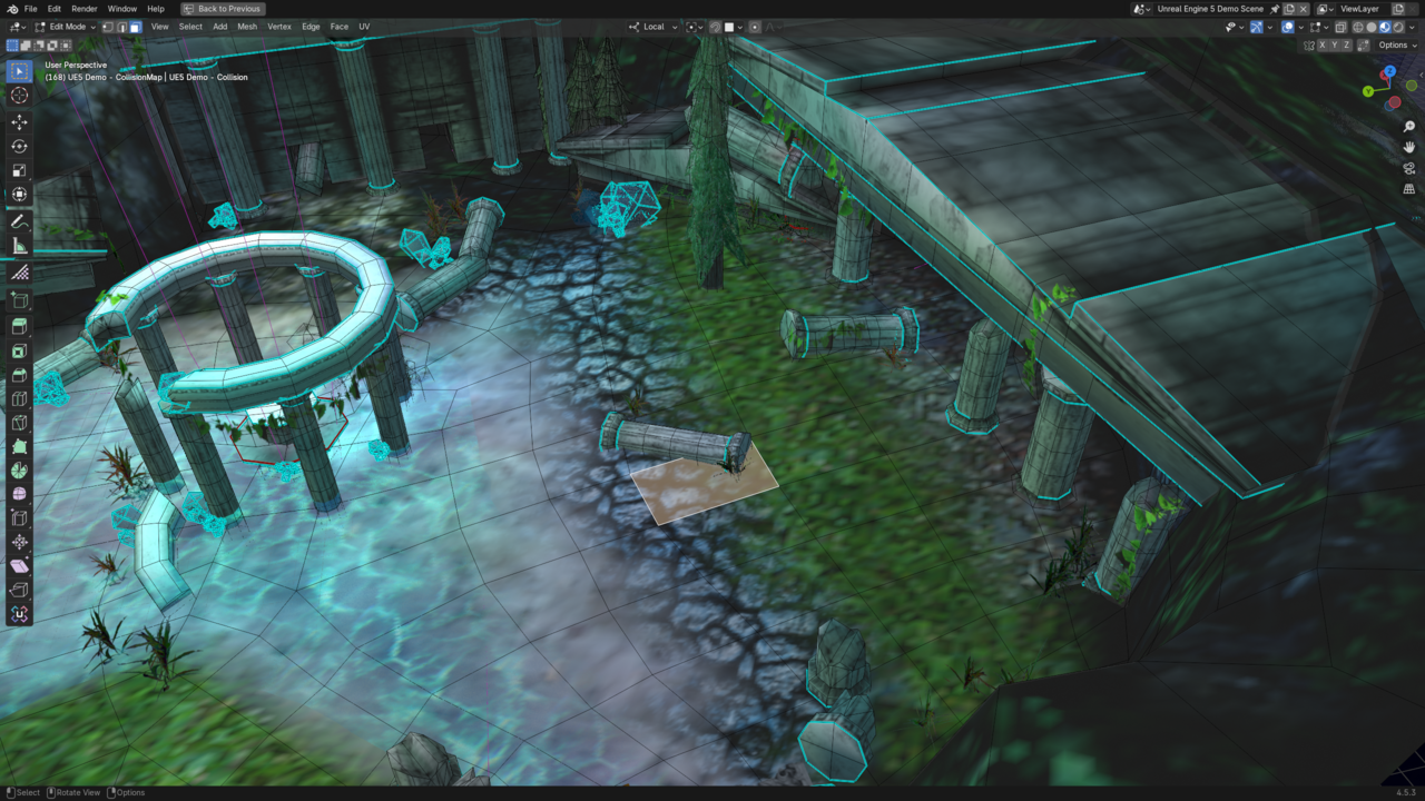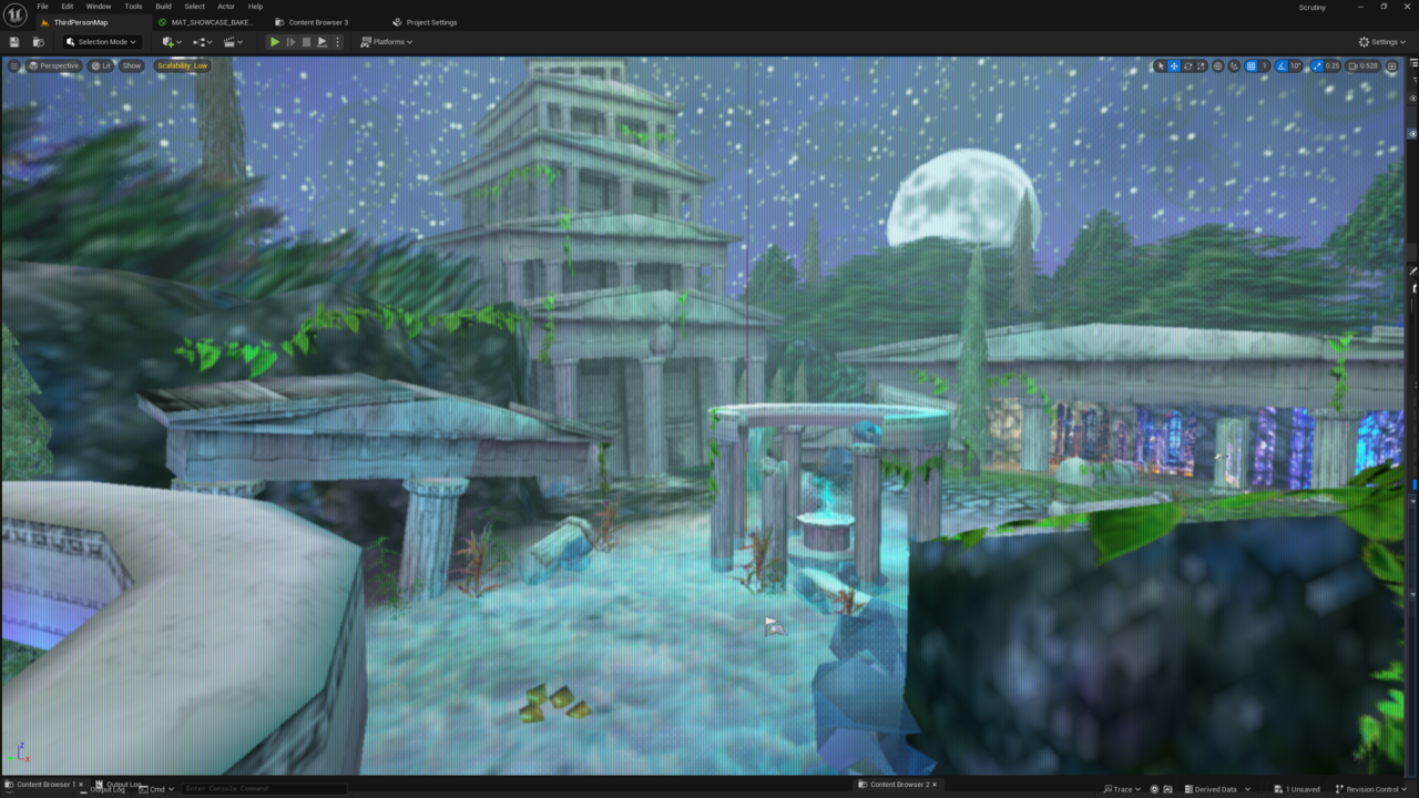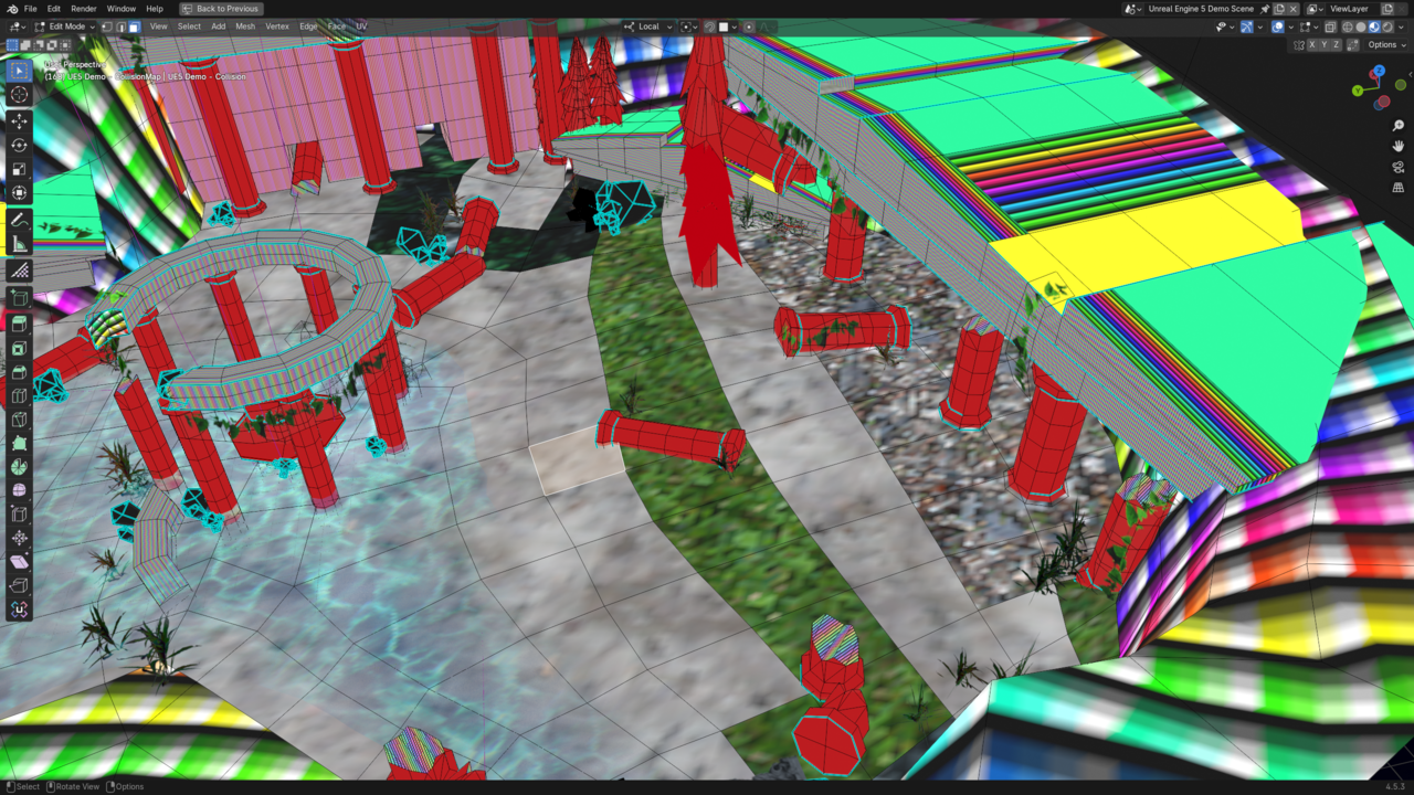 This is a asset library I've constructed and released for baking lighting into Vertex colors and UV attributes along with a virtual texture system to emulate how materials before wide spread standardization of physically based rendering materials. This comprises of a released asset library, an unreleased blender addon and a collection of unreal 5 materials and blueprints enabling a what you see is what you get experience from blender to unreal using minimal material slots.
