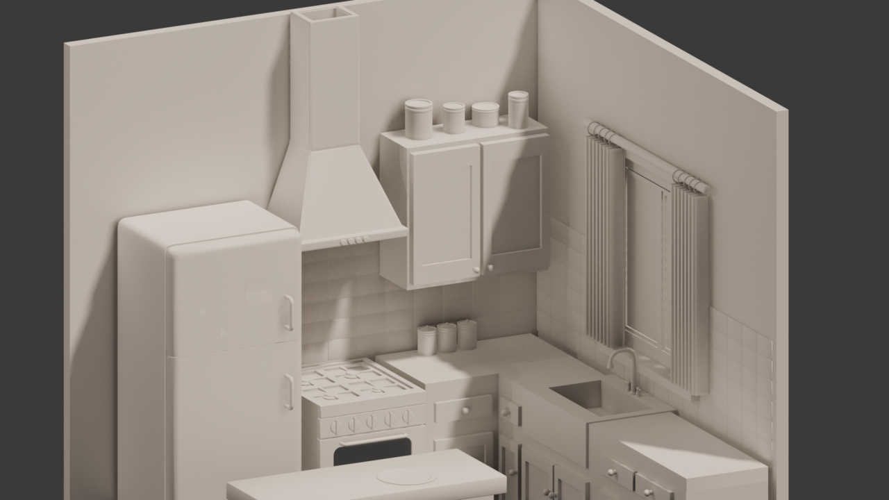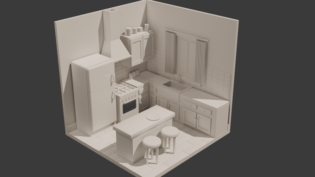 I am a couple weeks into Blender 4.5 and have been enjoying some low poly models and tutorials on YouTube. I decided to purchase a course to get a more in-depth lesson. This is an Isometric Spaces course by Rob Dickinson. It's a very smooth course to follow but I soon learned I was way in over my head because I had no idea what I was doing, and things were very hard to grasp. I felt like I needed more knowledge and a deeper understanding of this software and thats what led me to this site. So, this is where I am at in the Iso spaces Kitchen course. I've decided to put it off for now and try to dive into the beginnings here on CGCOOKIE. I thought it would be a good idea to share.