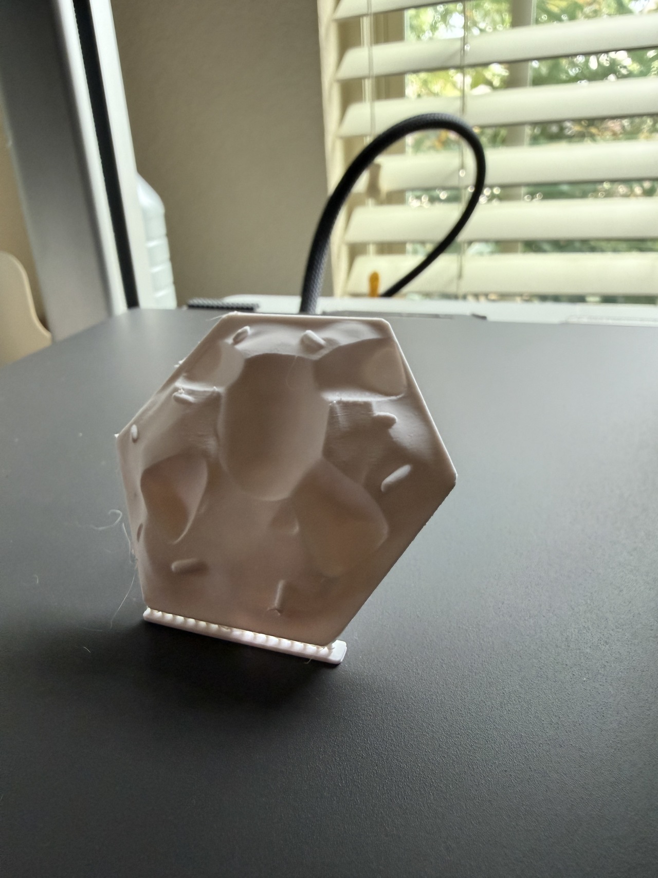 The frosting is a fun print that I like to do on an angle to get the most detail out of the sprinkles on my 0.4mm nozzle. There is a simple support I learned how to do from Slant3D that works amazing and it is easy to break off and clean up. The filament I am using is PETG and I have left it out in the humidity, so it is rather wispy and stringy when it prints. I have a lot of PETG white that I want to use up, so I use it on things like this project. I haven't had any issues with it even when "wet", it just takes a little clean-up and sanding on some of the edges. The close-up image shows this off as well. Mixing PLA and PETG with this glue has not been a problem for me so far. They both adhere to each other without issues.