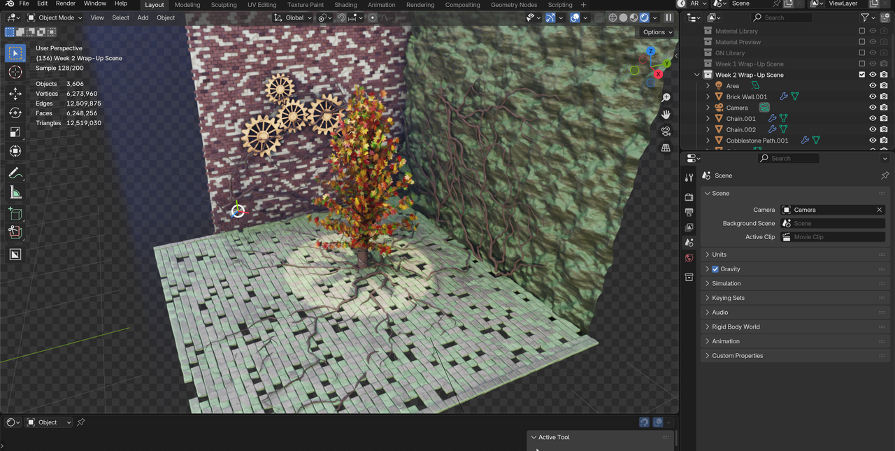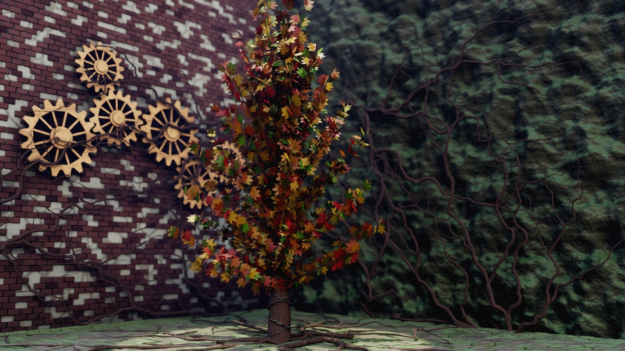 Trying to force myself to learn geometry nodes and materials in blender Week 2. Little scene I cooked up with random geonodes projects I worked on this week.