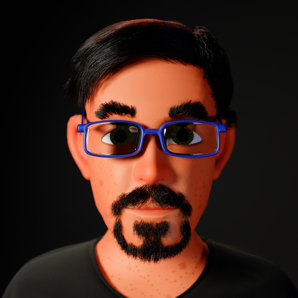 This is a self portrait character. It's basically combining things I've learned from BASEMESH, RIG, and SHAPE specifically, as well as bits and pieces I've learned about texturing over the years, from CG Cookie and elsewhere. The logo on the shirt was also made in Blender, using Grease Pencil.