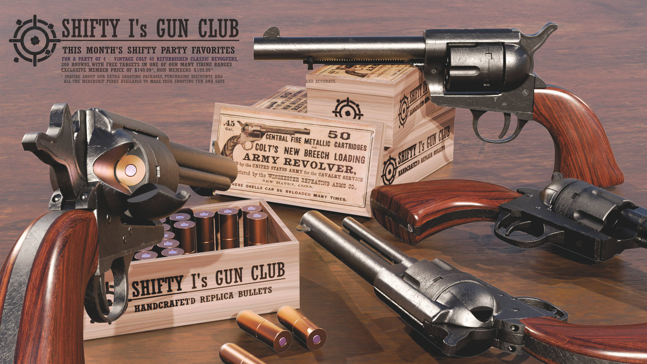 Looking for a way to pose the revolver in different angles in one render. Just an idea I wanted to try. Feel free to scrutinize.