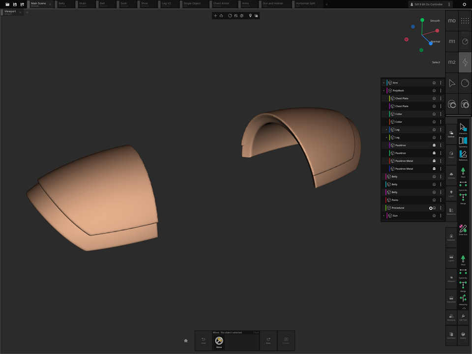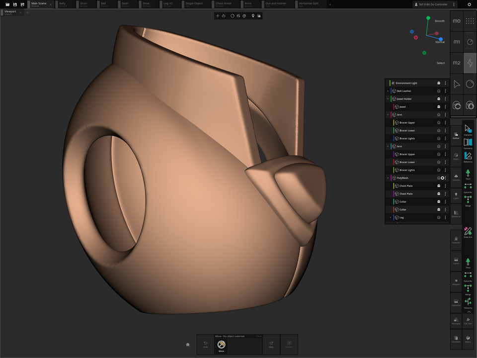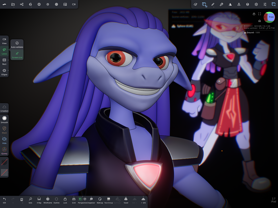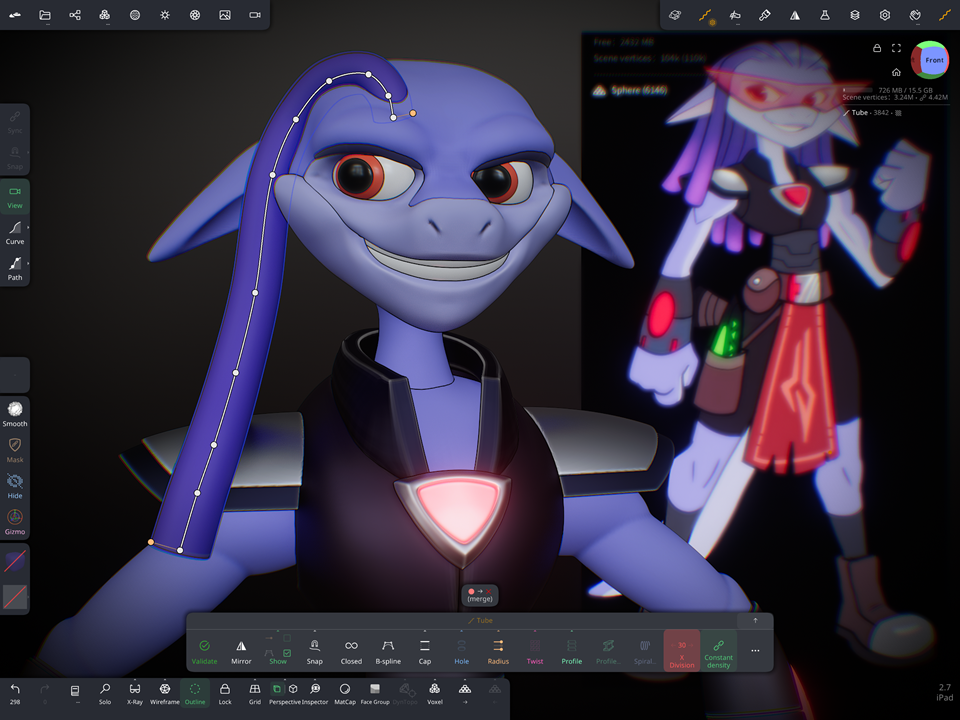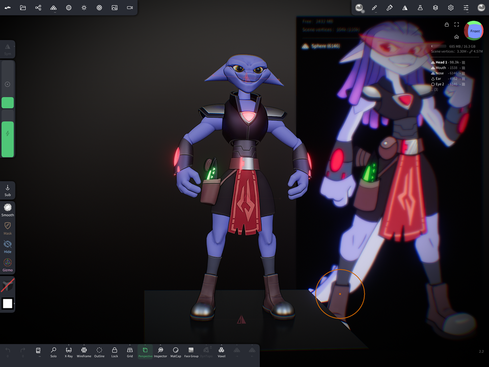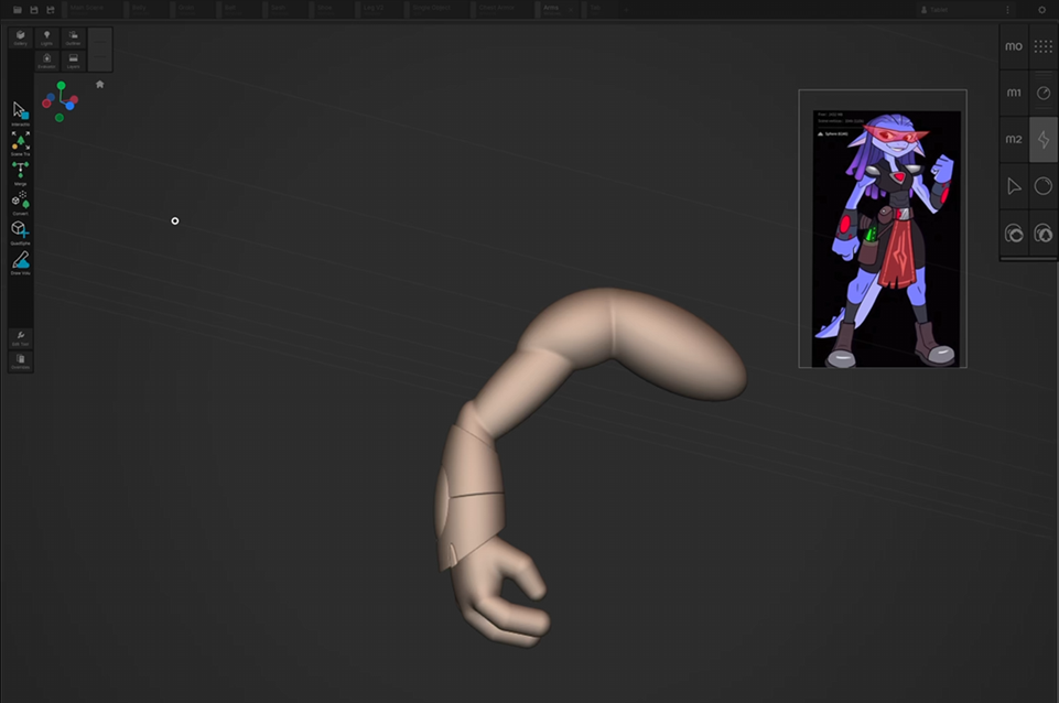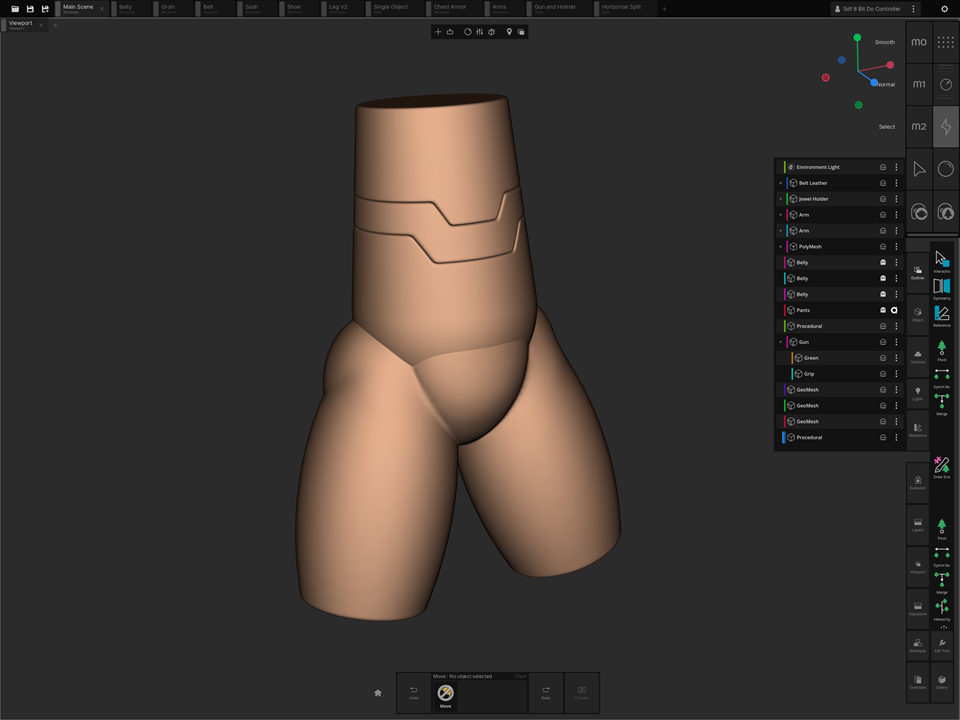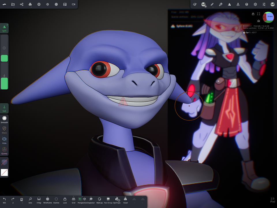 2. SDF shapes are awesome for initial blockout on my iPad but they aren't as fully organic at sculpting body parts. They do a great job to start and get a silhouette started on my iPad but quickly become computationally heavy and slow down the workflow.