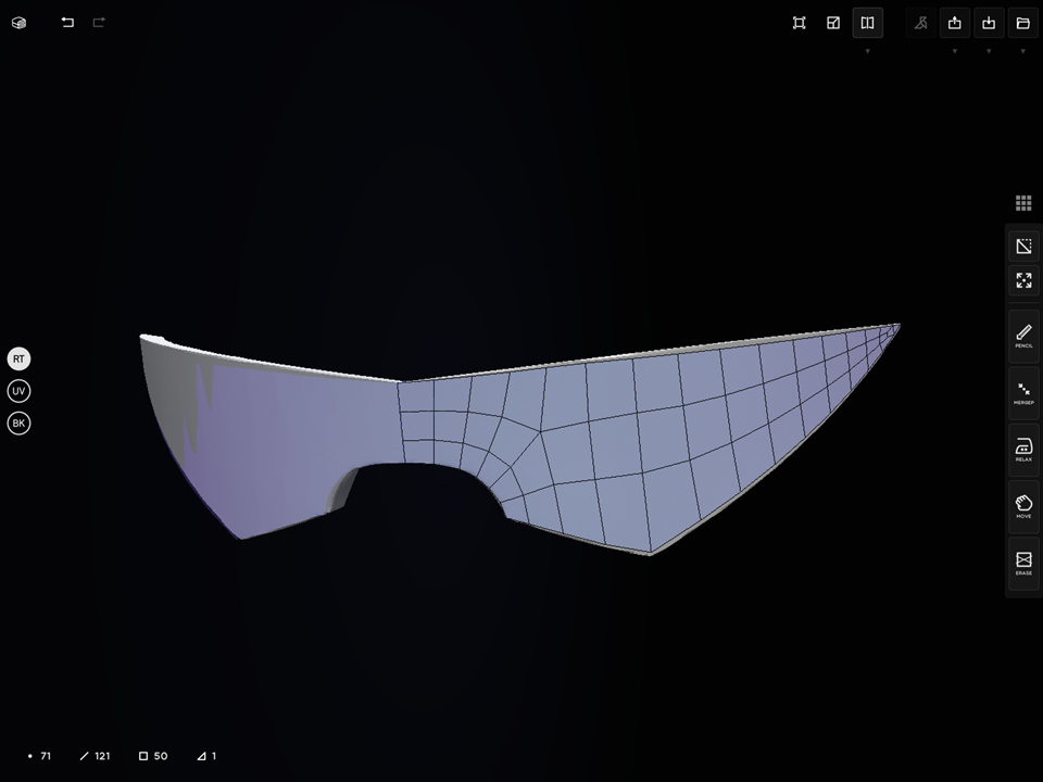 SDF block-out shapes and initial conversion to mesh for most of the body; head and tail excluded: Uniform App (iOS) on M4 iPad