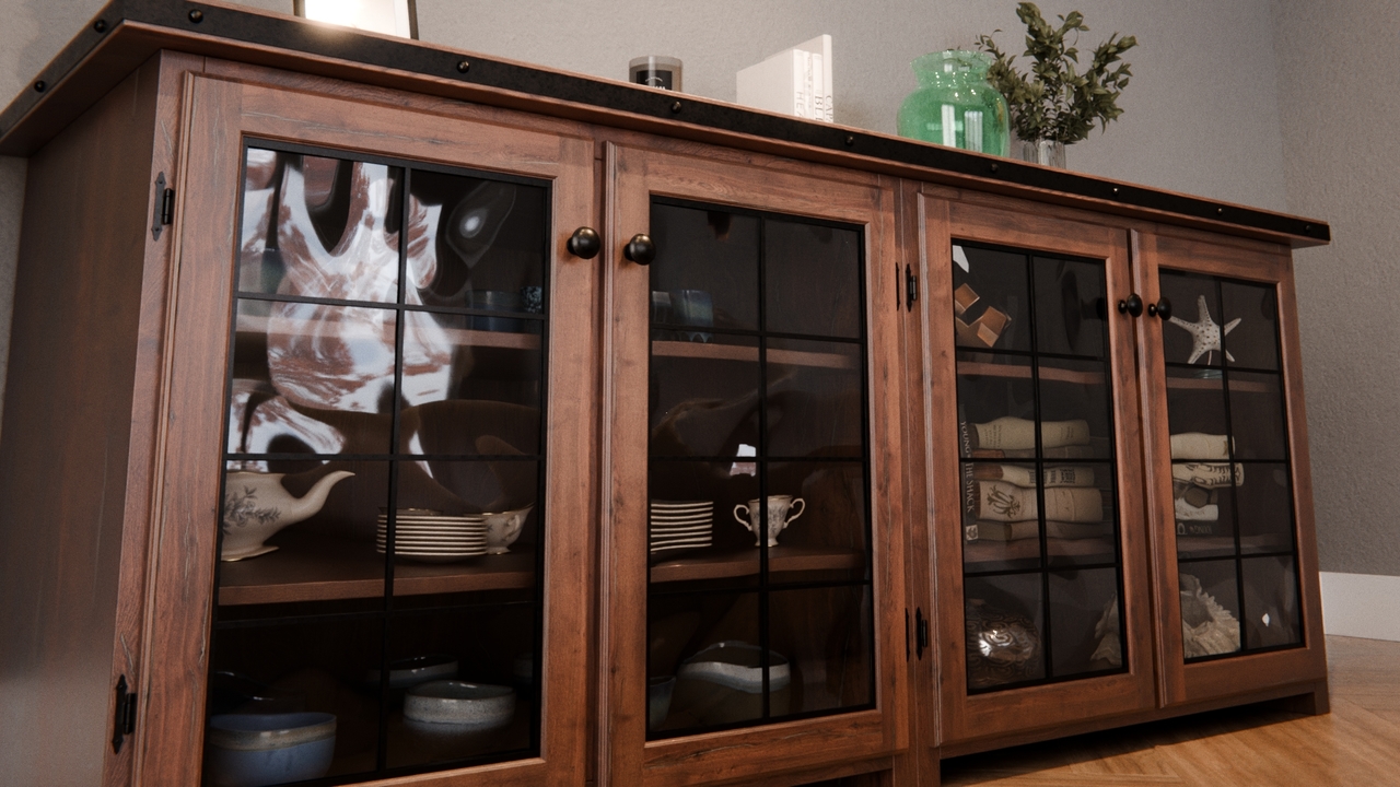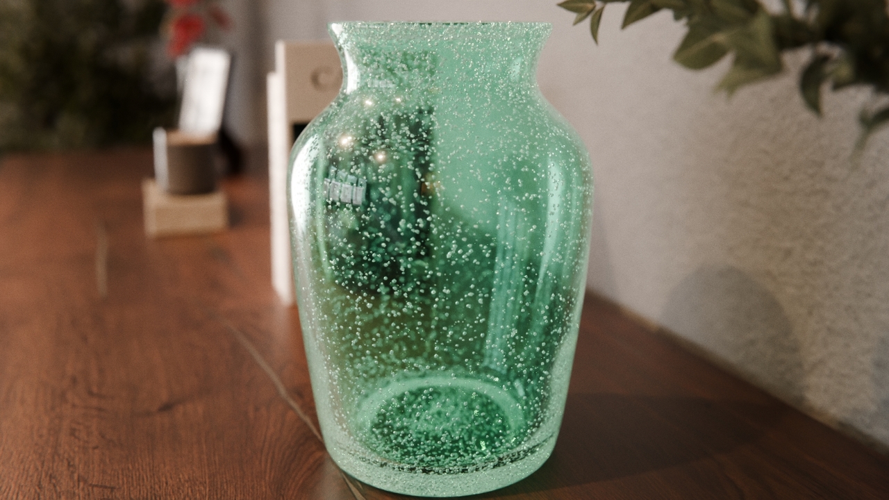 I love the distorted glass panes in the cabinet and I am head over heels for the bubble glass vase! That looks so good! Oddly enough, I was just pondering how to create that sort of bubble effect for a "resin pour" piece. Probably with icosphere particles?